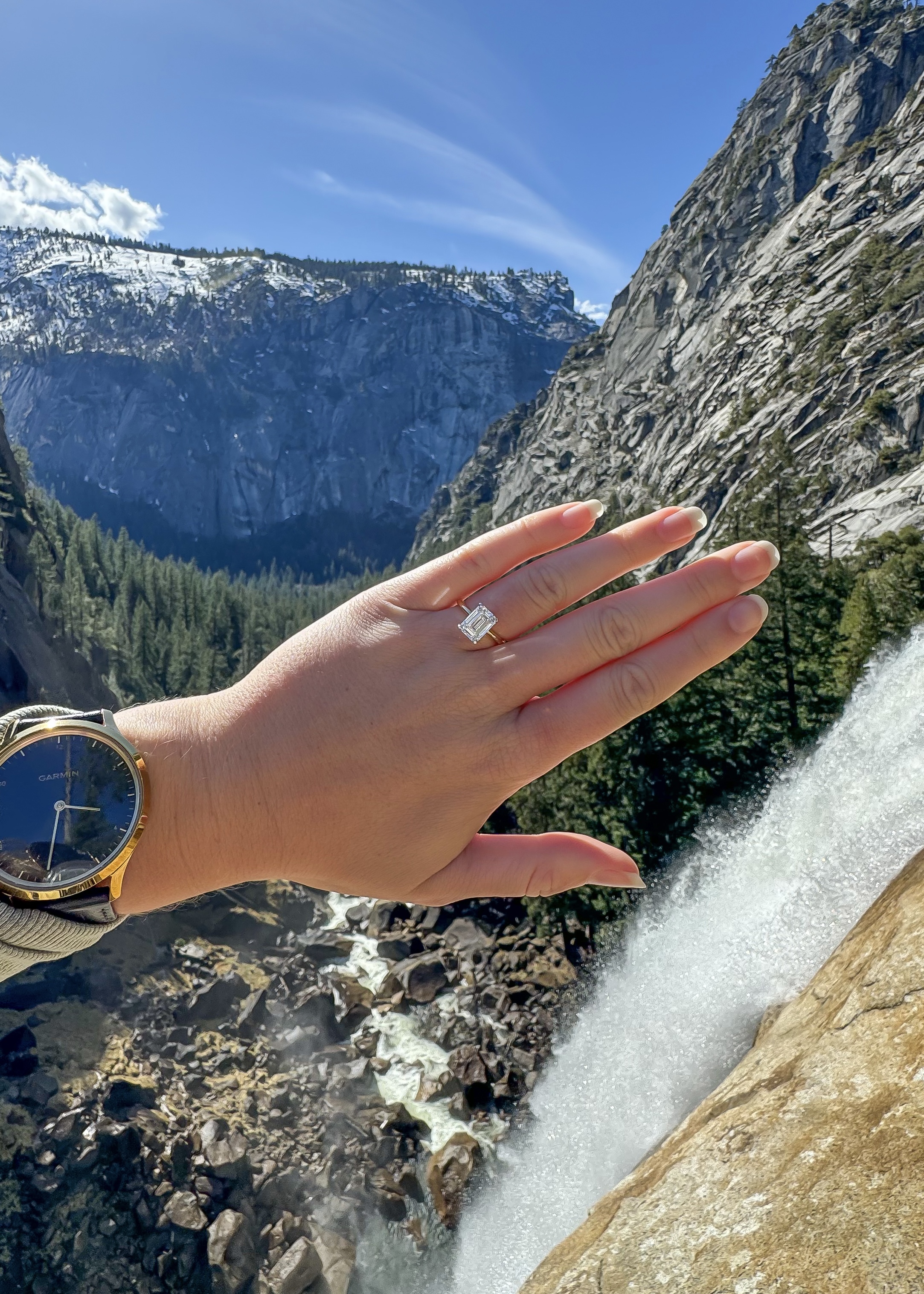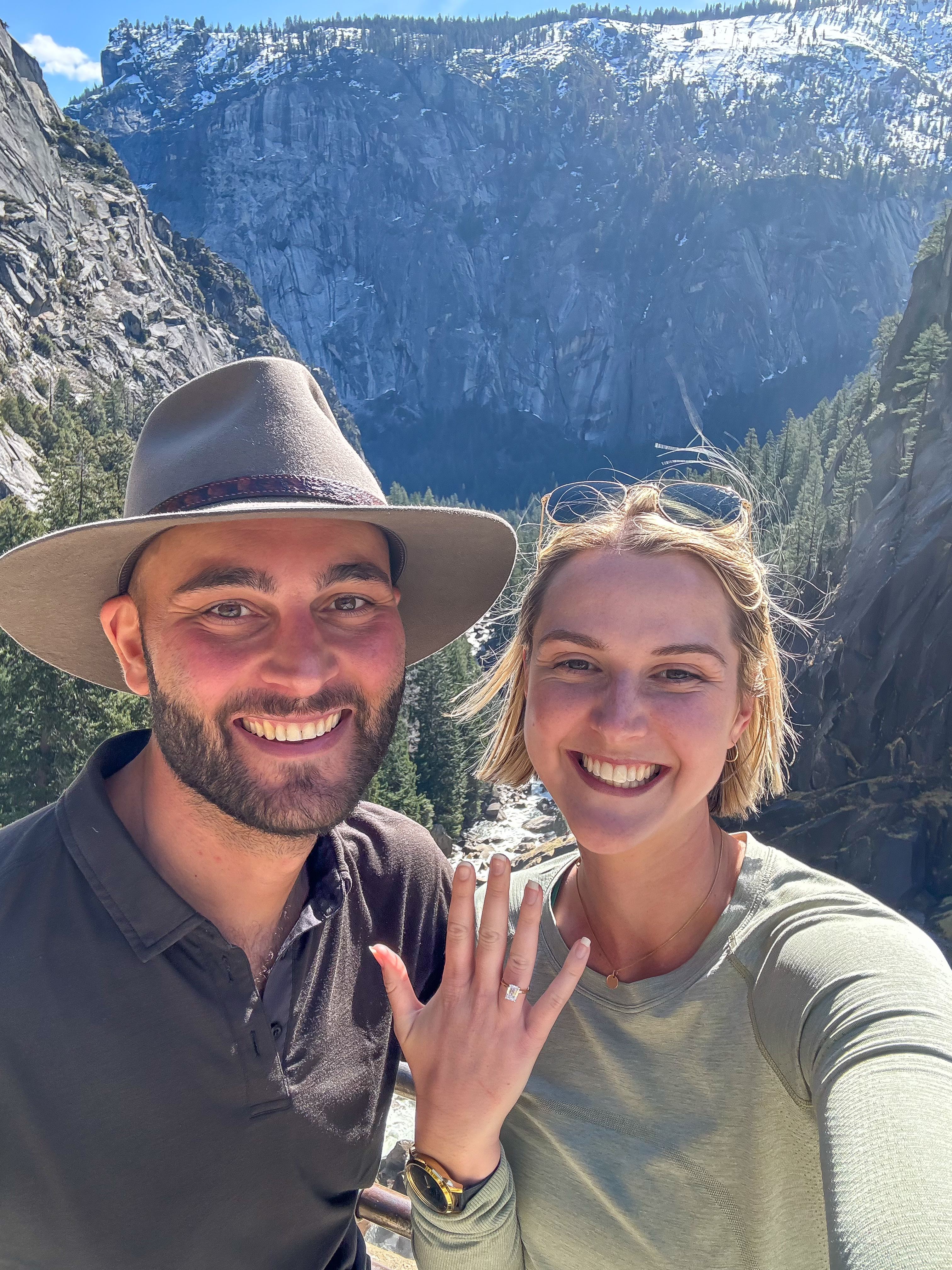 On the 21st of March 2024, they visited Yosemite National Park. At the top of Vernal Falls with a stunning view of the cascades and valley peaks, Nate dropped a knee and asked Bec to marry him.